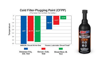 1Based on independent testing in July 2017 of AMSOIL Diesel All-In-One and Howes Lubricator Diesel Treat, using diesel fuel representative of the U.S. marketplace and Howes’ recommended treat ratio for above 0°F.